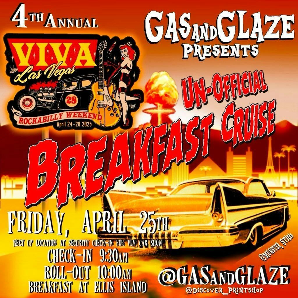 Friday will be the 4th annual unofficial Vive Las Vegas breakfast Cruise. Don't have a vehicle to drive in the cruise? Don't worry about it. Just ask some of the people with cars if they have an empty seat. People do it every year and make lifelong friends that way. Some people will take a Rideshare and the others will happen people's rental cars.