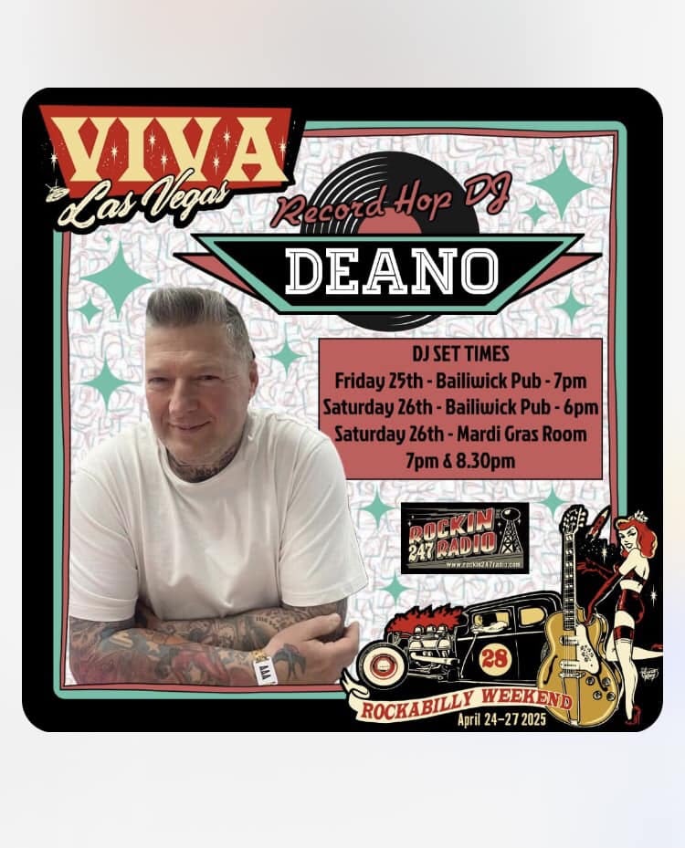 DJ Deano is a south London boy who started DJing at 14 for Jerry Chatabox’s brother Barney at the Tigers Head, Catford. Dean would get on the bus and go see Tom Ingram DJ and also fellow DJ Original Mick. Deano has been collecting vinyl since then ..With an extensive collection, Deano has DJ’d around the globe with bookings including Belgium, Holland, Tenerife, and the prestigious Viva Las Vegas Rockabilly Weekender. Deano is co-host of the 78rpm sessions and runs a successful Rockin’ club in London. The vinyl vault radio show on Rockin 247 Radio has had a fantastic international following over the last two years