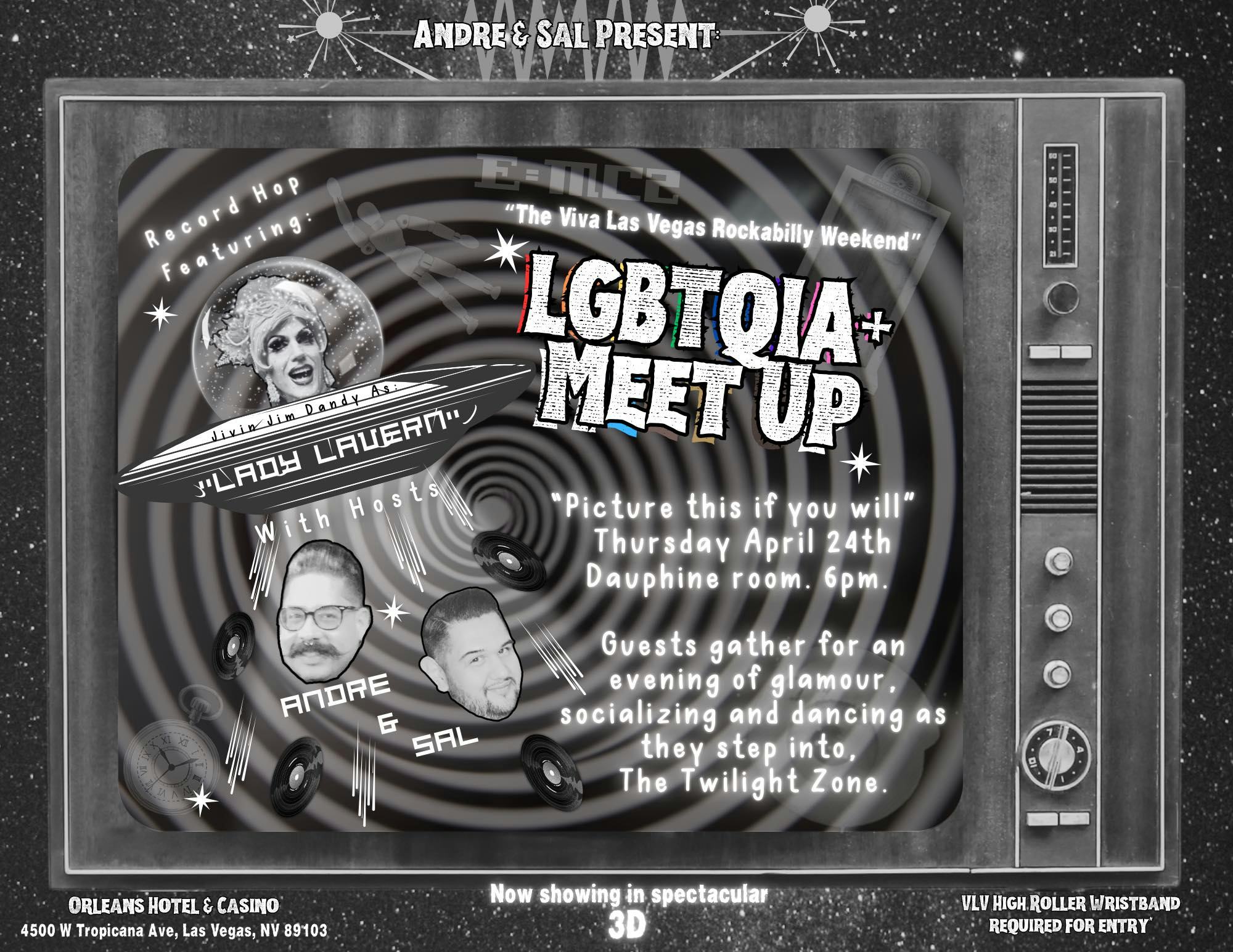 Picture this if you will….Thursday April 24th, 6pm. The Dauphine Room of the alluring Orleans Hotel and Casino. Guests arrive for a dazzling evening of elegance, dancing, and community as we step into the twilight zone. This special LGBTQ+ meetup at Viva Las Vegas Rockabilly Weekender celebrates self-expression, diversity, inclusivity, and vintage glamour. Slip into your finest retro attire, embrace the rockabilly spirit, and let the night take you where past and present collide in style. Music selection by the Fabulous Jivin Jim Dandy as Lady Lavern with your hosts for the evening Andre & Sal. *VLV High Roller wristband required for entry. Drop on in, everyone is welcome!